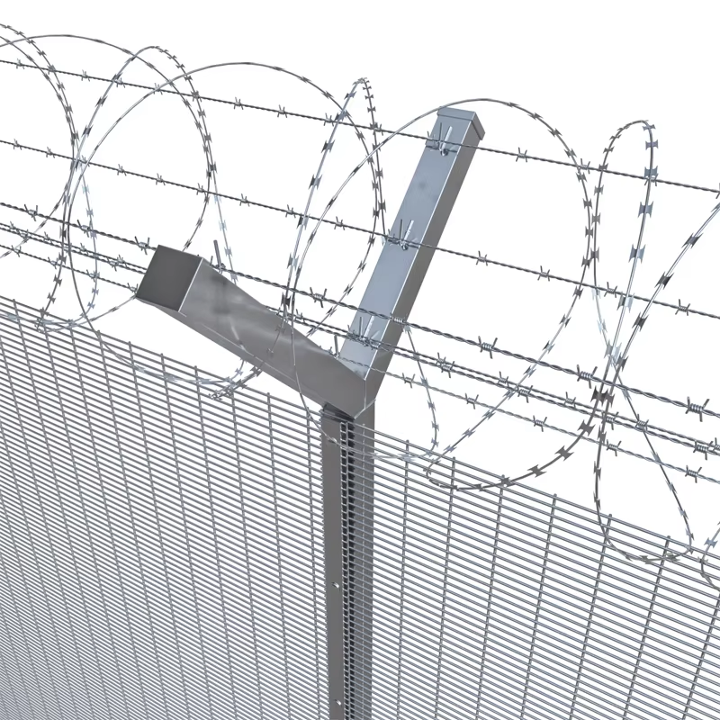 358密紋護(hù)欄網(wǎng)片,又被稱為防攀爬網(wǎng)或反攀爬網(wǎng),其橫絲或豎絲間隙非常小,通常在30毫米以內(nèi)。這使得它能夠有效地防止攀爬和絲鉗的破壞,同時(shí)保持了良好的透視性。這種護(hù)欄網(wǎng)片可以與刀片刺絲網(wǎng)協(xié)同使用,進(jìn)一步增強(qiáng)其防護(hù)效果。刀片刺絲網(wǎng)的鋒利邊緣和尖銳刺狀結(jié)構(gòu)使得任何試圖攀爬或破壞的企圖都會(huì)受到極大的阻礙。